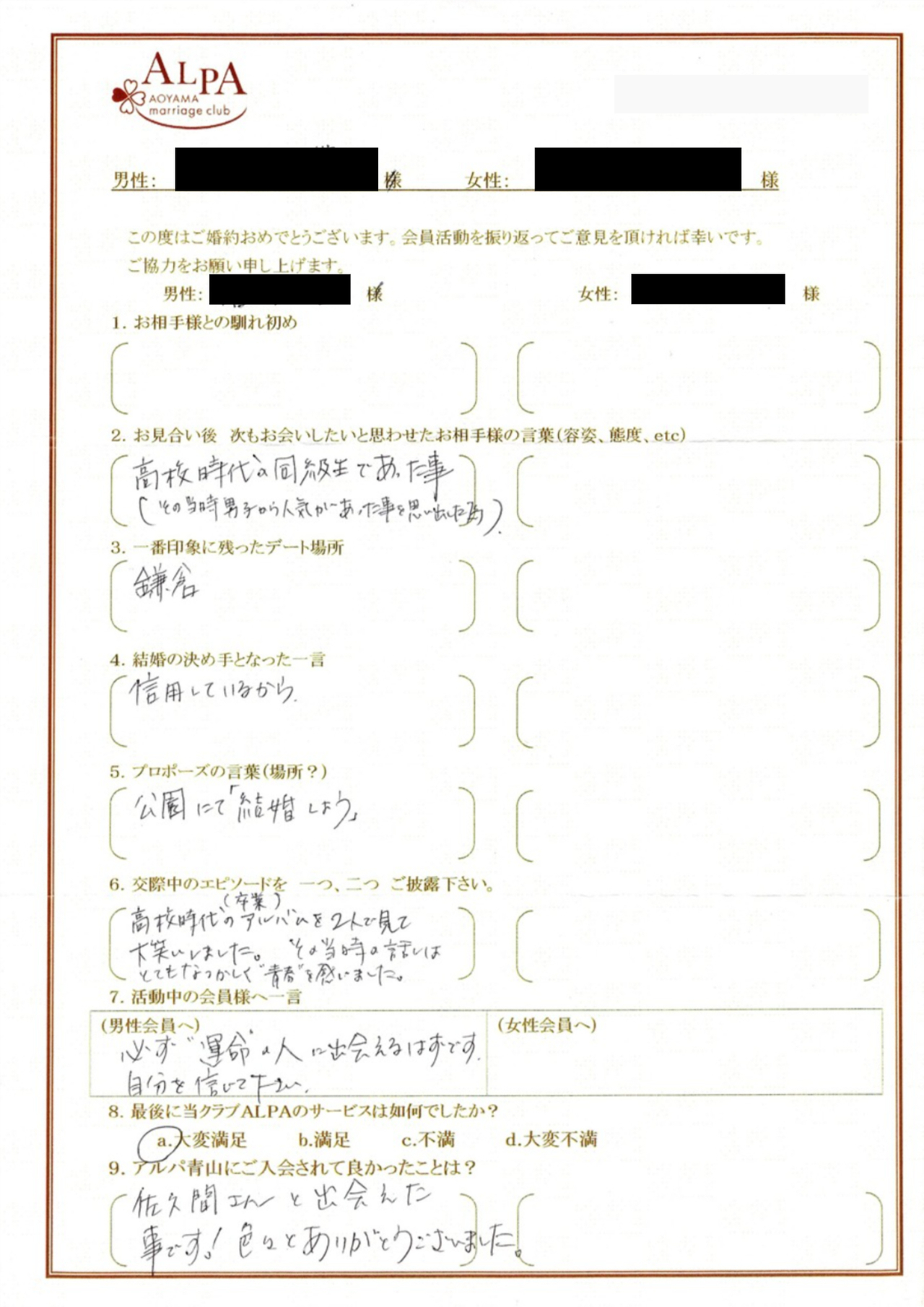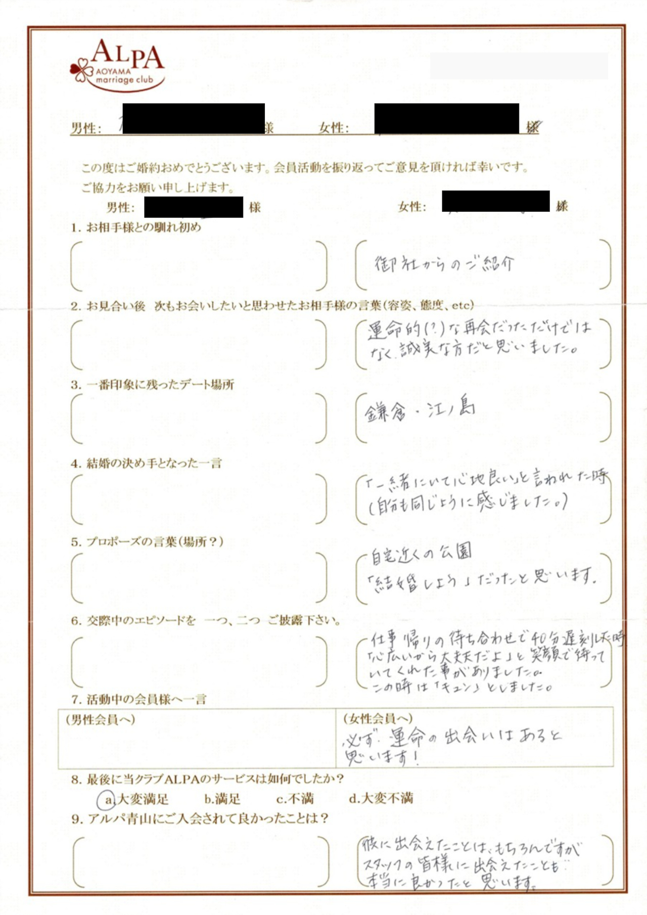 彼と出会えたことは勿論ですが、スタッフの皆さんに出会えたことも本当に良かったと思います。