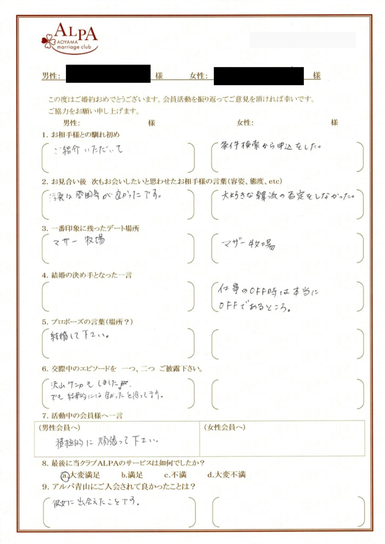 臆することなく活発に動いている様子から、家庭を一緒に築いていく頼もしさを感じることができたためです。